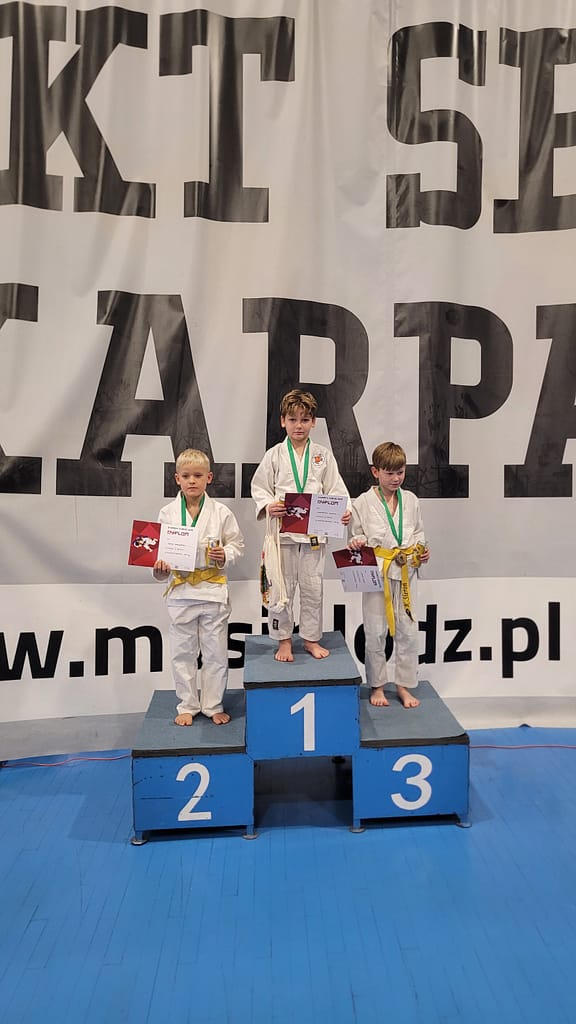 Dzisiejsza sobota była pracowita i owocna dla naszych zawodników. Wystartowaliśmy na Turnieju Judo Dzieci w Łodzi organizowanym przez Pałac Młodzieży Łódź oraz na VI Otwartych Mistrzostwach Województwa Kujawsko – Pomorskiego. Do Łodzi wyruszyła dwunastoosobowa ekipa skąd przywieźliśmy łącznie 13 medali w tym 7 złotych oraz 6 srebrnych. Na szczególne wyróżnienie zasługuje Franciszek Andrzejczak który podbijając swoja kategorie wiekową (U9) stwierdził, iż wystartuje również w wyższej kat. wiekowej aby zmierzyć sie z przeciwnikami 2 lata starszymi. Zaprezentował się świetnie, i wygrywając 3 walki przed czasem stawił się w finale. Tam nieznacznie uległ przeciwnikowi który był 2 lata starszy od niego. Dzięki temu zabiegowi Franek do Kutna przywozi złoto oraz srebro. Jego koleżanka klubowa Hanna Job wzięła przykład z młodszego kolegi i wystartowała w drugiej kat. wagowej dzięki czemu również jak Farnek do swojego złota dodała srebro.